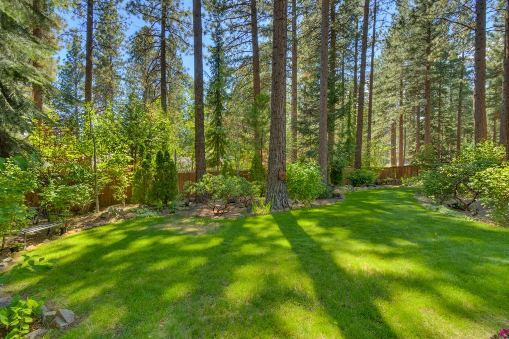 - The yard with towering trees blooms all spring and summer long.