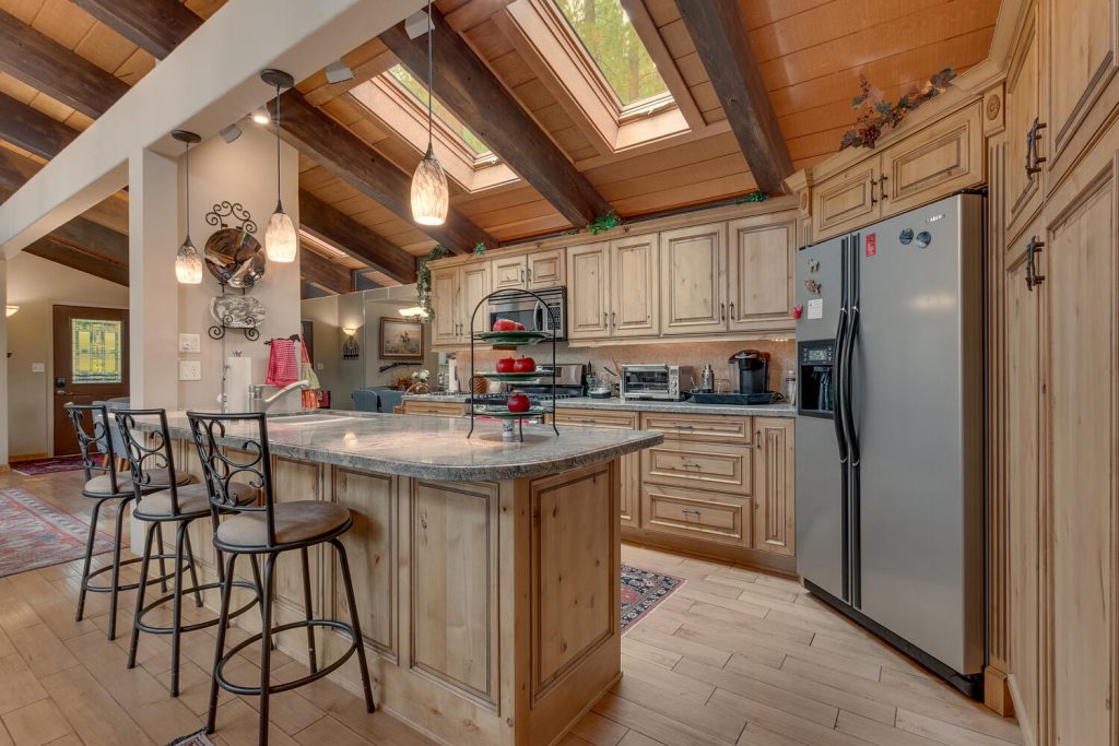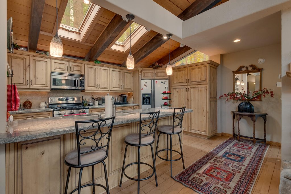 There are several skylights, a spectacular beveled glass entry door, a spacious dining area not usually found in Incline Pines, and even a workshop on the lower level that comes completely equipped with tools.